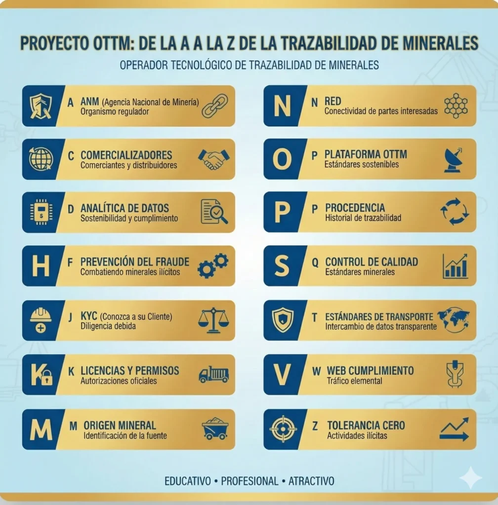 Operador Tecnológico de Trazabilidad de Minerales. Plataforma que facilita el registro de transacciones y se comunica con la PTM de la ANM.